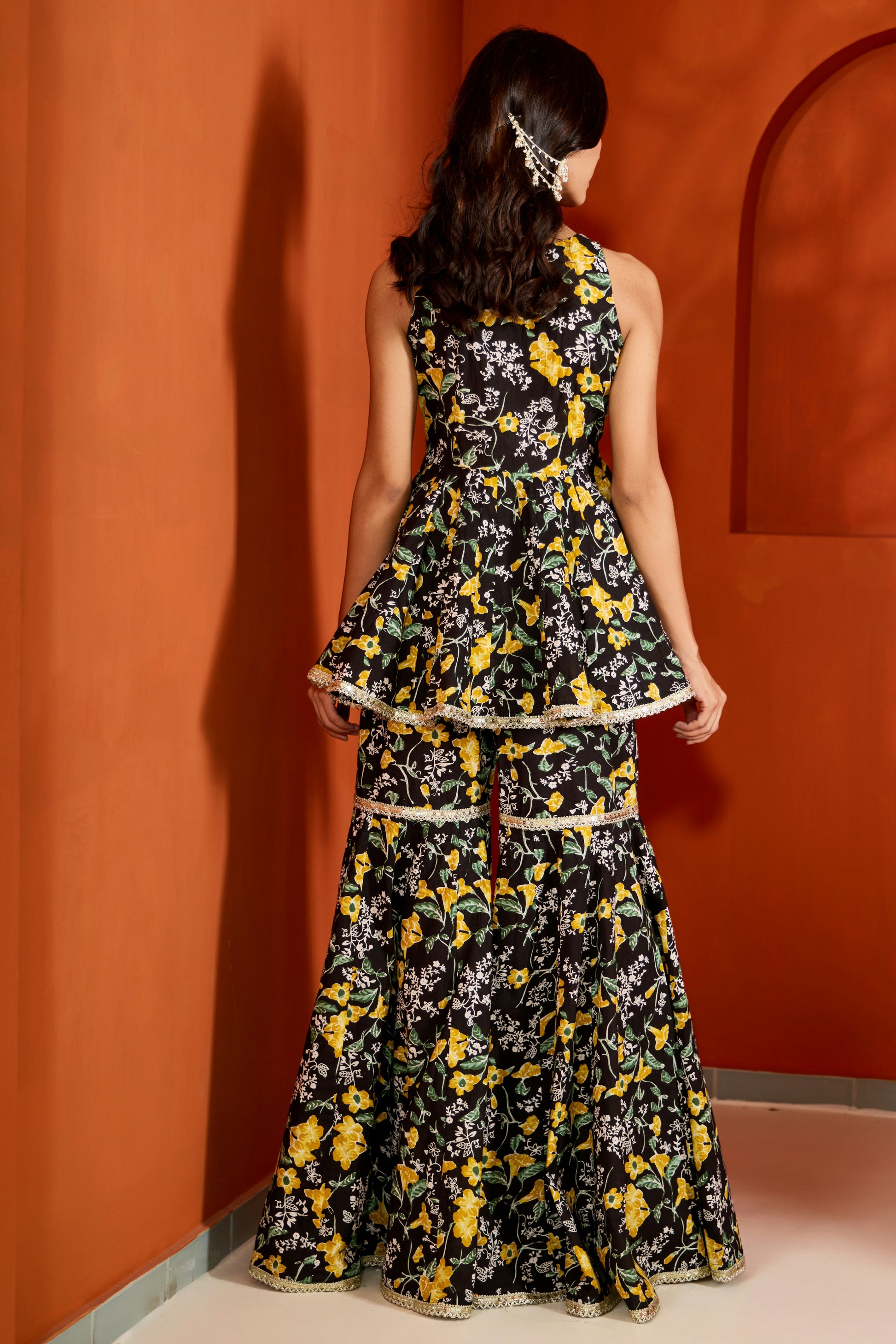 Black Cotton Printed Sharara (Set of 3)
