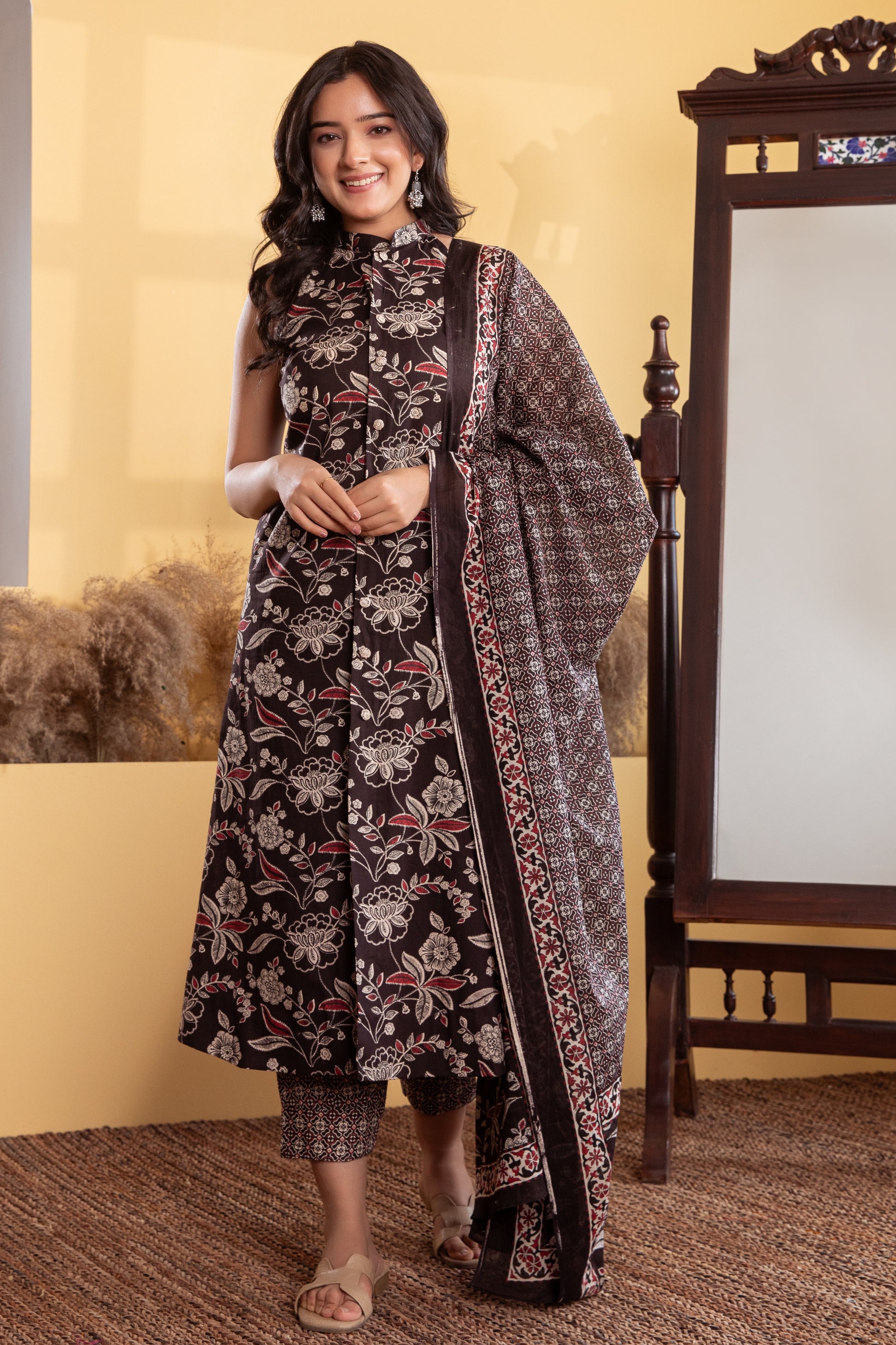 - Cotton Printed Kurta with Palazzo & Dupatta
