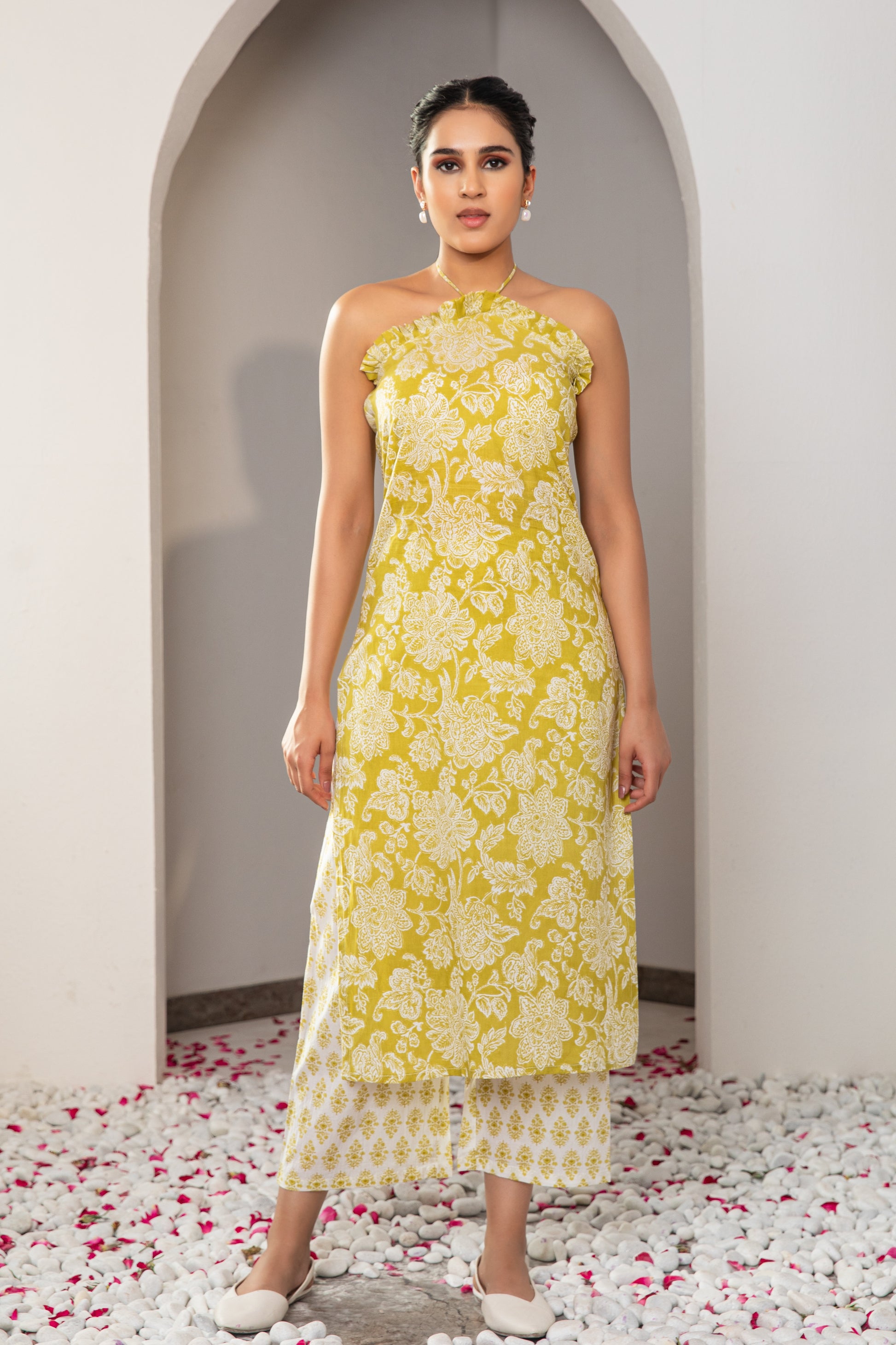 Green Halter Neck Kurta & Palazzo (Set of 2)